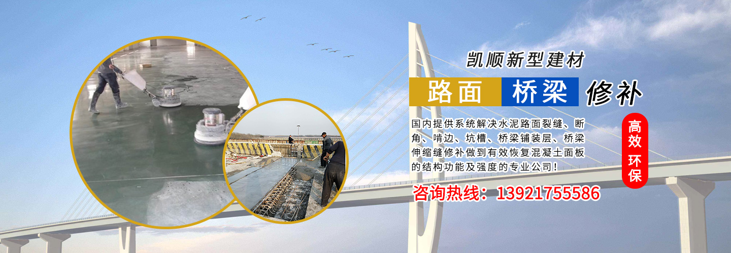 江蘇凱順新型建材有限公司是國內提供系統(tǒng)解決水泥路面裂縫、斷角、啃邊、坑槽、橋梁鋪裝層、橋梁伸縮縫修補做到有效恢復混凝土面板的結構功能及強度的專業(yè)公司!為市政工程、高速、國道、省道、縣鄉(xiāng)道路的改造及大修、中修等大型工程提供了快速、高效、環(huán)保、經濟系統(tǒng)方案和技術支持!